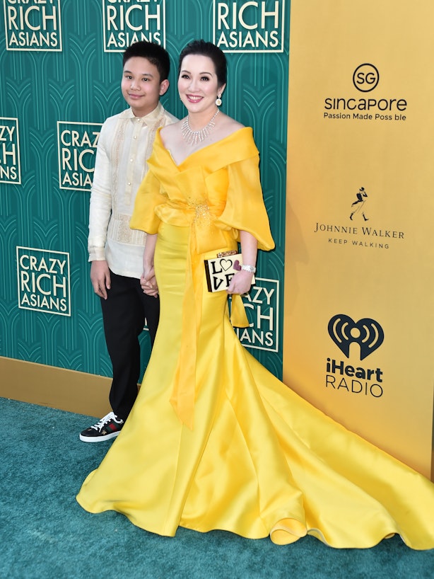 Kris Aquino plays the Malay royal family, Princess Intan, wearing a bright yellow dress with a dramatic train from Filipino young designer Michael Leyva.