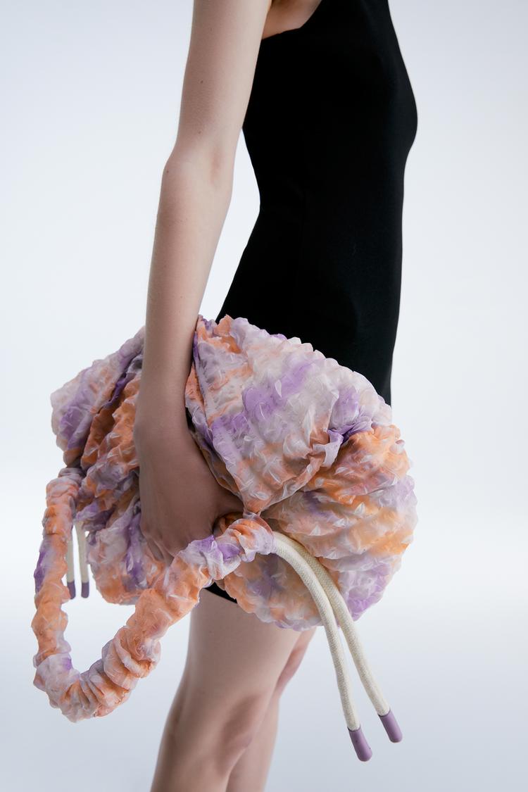 Purple and orange are great if you`re wearing a plain-colored dress to give your entire look a pop of color. You can get one from Zara. It has a ruched fabric exterior with soft polyester fabric.
