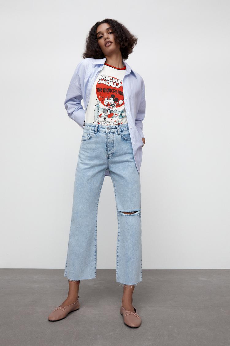 The voluminous end of your high waist jeans can balance with your classic t-shirt. And, probably, round neck t-shirts are the girl’s go-to outfit when she wants to look more casual and straightforward. Bell button pants are key to make your look extra and more stunning.